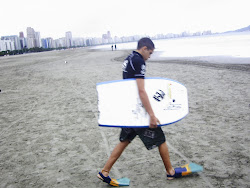 E ainda por cima em Santos, SP, uma praia quase sem ondas...